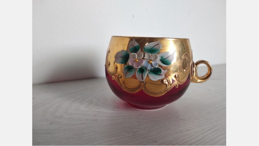 Antiga peça pintada à mão com tinta de ouro na antiga West Germany antes da queda do muro de berlim.