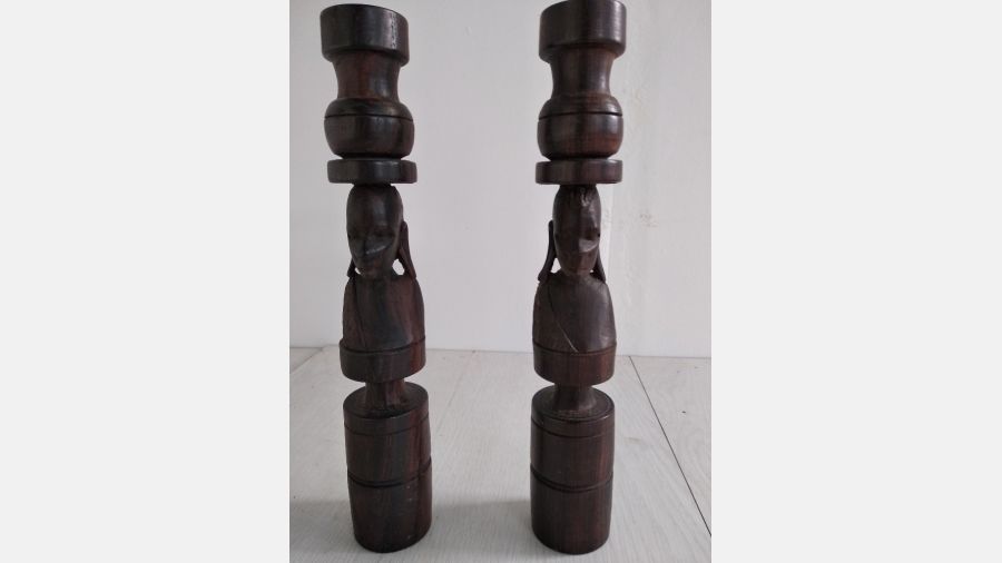 Conjunto de Castiçais de madeira em madeira de Pau Preto Africa